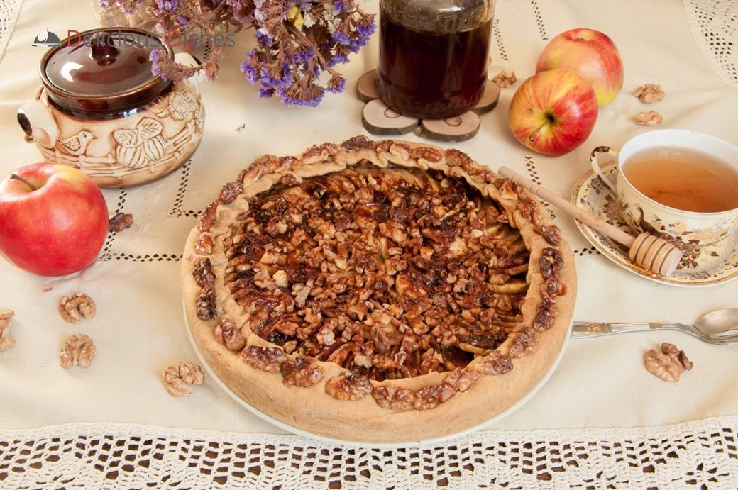 Галетный яблочный пирог из трех видов муки, с грецкими орехами и медом.